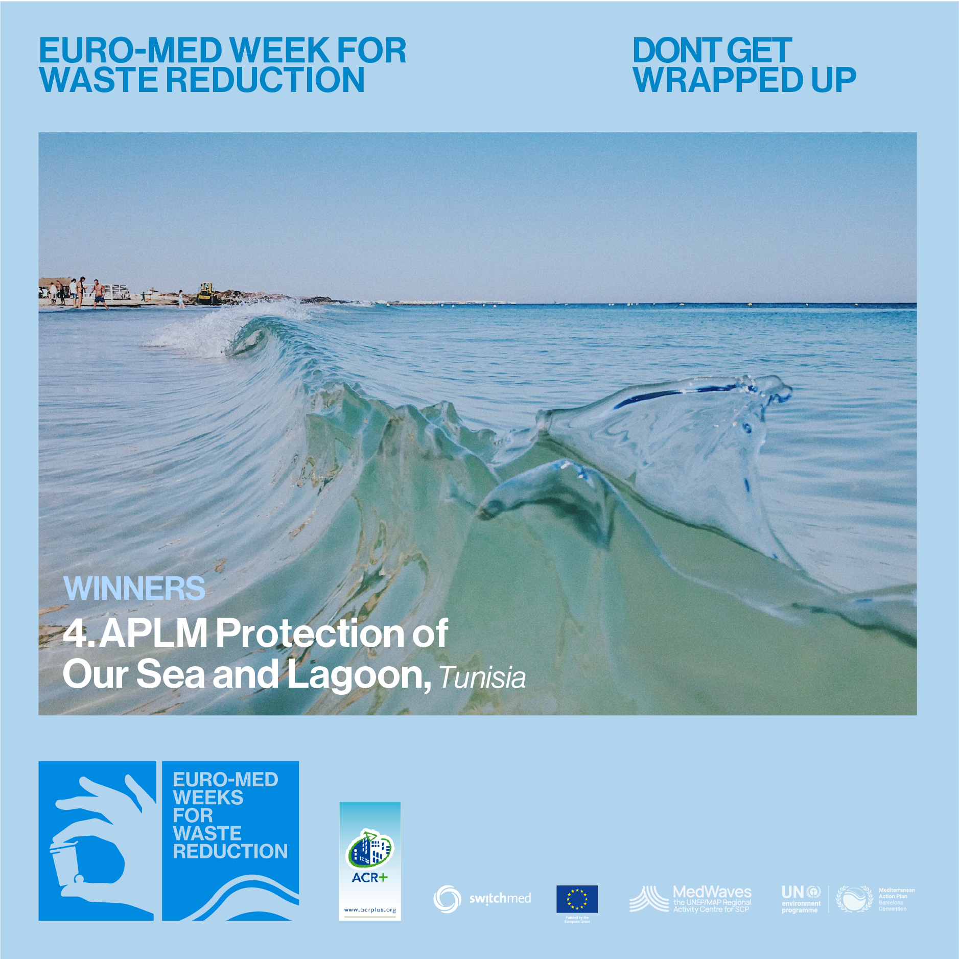 The campaign is led by 2 organisations with a solid network and expertise on circular economy and on the Mediterranean area: ACR+ and MedWaves, the UNEP/MAP Regional Activity Centre for SCP. This second edition has been entirely funded by the EU through the SwitchMed Programme.